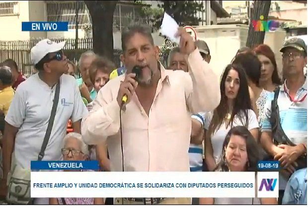 (Caracas).- ’Nos encontramos acá para levantar nuestra voz de protesta, no podemos seguir permitiendo que nos sigan arrebatando a nuestros diputados que fueron electos por el pueblo’, afirmó este lunes el Coordinador del Frente Amplio en Caracas, Goyo Caribas, desde la Plaza Washington, en El Paraíso, durante un acto con los diputados del Frente Amplio y Unidad Democrática, en solidaridad con sus colegas parlamentarios perseguidos por el gobierno de Nicolás Maduro.