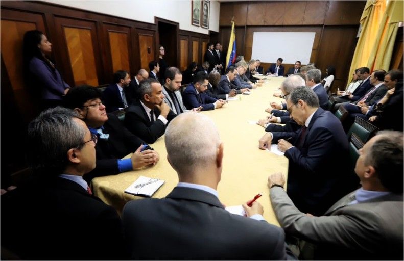 Caracas.- El presidente de la Asamblea Nacional, Juan Guaidó, reconocido como presidente encargado de Venezuela por más de 50 países, se reunió este martes con representantes del Cuerpo Diplomático en la sede de la Asamblea Nacional.